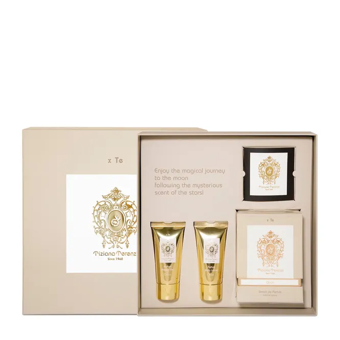 Парфюмерный набор Andromeda Set от Tiziana Terenzi, представленный в «Рив Гош» — это подарок для тех, у кого уже есть всё. В комплект входят цветочный-цитрусовый унисекс-парфюм, а также лосьон для тела и гель для душа с тем же ароматом.
