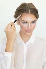 Шаг 6. Примените светлый корректор или хайлайтер: высветлите середину носа (между темными линиями), центральную часть лба, уголки под глазами, верхнюю часть скул (ту, что выше нанесенной темной линии), область над верхней губой и уголки губ.