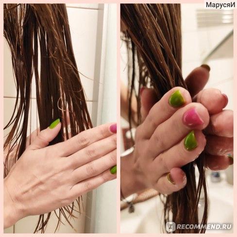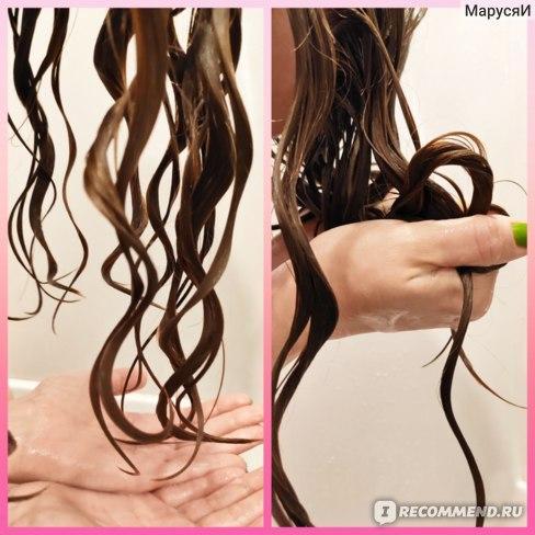 Продолжаем сжимать до тех пор, пока волосы не достигнут состояния водорослей, и мы не услышим легкий звук хлюпания, что будет означать, что они отлично увлажнены.