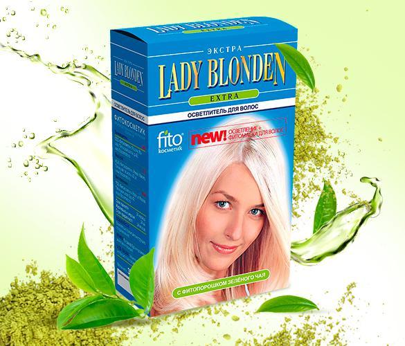 «Lady Blonden» – это осветляющее средство, в состав которого входят фитопорошки зеленого чая и белого льна, защищающие волосы от воздействия ультрафиолетовых лучей и свободных радикалов.