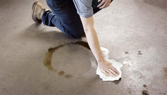 Если на бетонный пол попало значительное количество машинного масла, не стоит пытаться убрать его с помощью обычной тряпки, так как это может лишь усугубить ситуацию – останутся разводы и пятна.