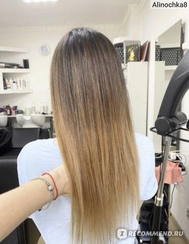 Следует отметить, что со спреем легко переборщить, особенно в начале использования. Со временем я освоила технику нанесения и теперь не оцениваю результат на влажных волосах. На мокрых волосах всегда кажется, что стоит сделать еще несколько пшиков, однако при высыхании холодный оттенок может стать более выраженным. После опыта я поняла, что для всей длины мне достаточно 6-7 пшиков, не более.