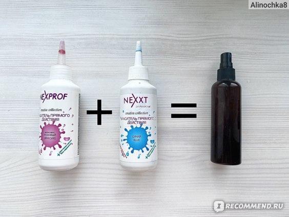 Процесс нейтрализации теплотой проходит отлично, и всё это занимает не больше времени, чем стандартное мытье. Для приготовления тонирующего спрея нужны всего лишь два пигмента: синий и розовый, в итоге мы получаем нужный фиолетовый оттенок.