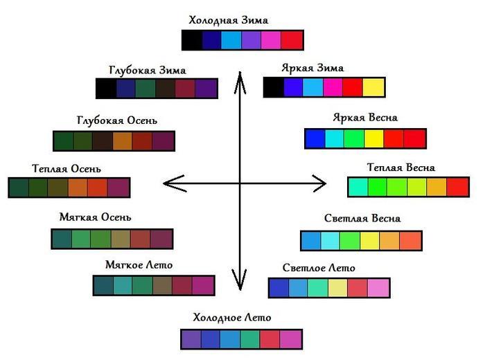 Для наглядности я добавила диаграмму, отражающую сезоны и соответствующие им цветотипы (это моя русифицированная версия).