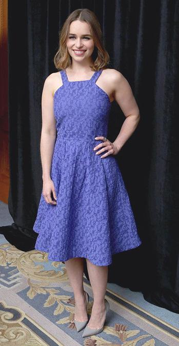 Принты на бежевом фоновом цвете должны содержать прохладные зеленые, синие и фиолетовые оттенки; изумрудный узор платья красиво гармонирует с синим бархатом обуви.