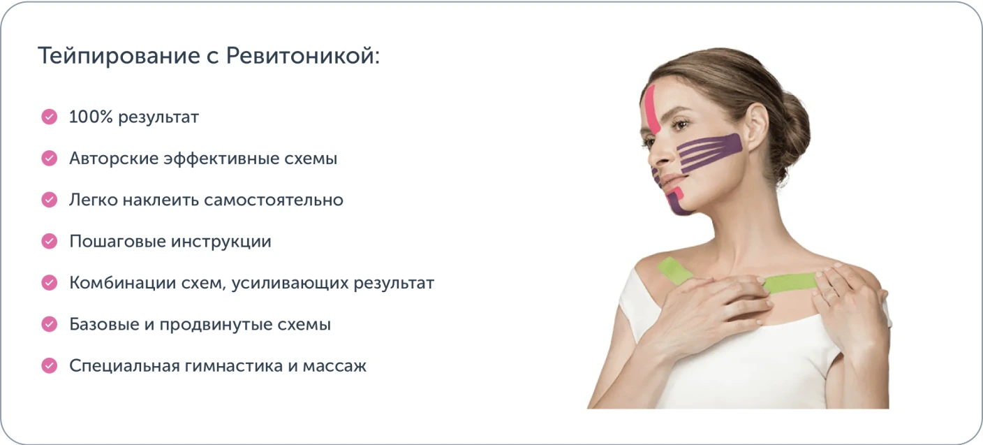 Независимо от того, помогают ли тейпы на лице в борьбе с морщинами всем, они безусловно способны предоставить заметный эффект, который сделает вас моложе и привлекательнее. Однако это не единственный метод, позволяющий справляться с морщинами и отеками без помощи профессиональных косметологов и хирургов. Существуют и другие методики, которые обеспечивают стабильный результат, основанные на схожих принципах, таких как улучшение лимфооттока, активизация кровообращения и снятие напряжения с лицевых мышц. Ревитоника представляет собой научно обоснованную технику самомассажа лица, которая идеально сочетает свои действия с тейпированием, усиливая его результат.