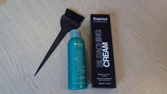 - Обесцвечивающий крем для волос Capous, цена 360 рублей (в продаже также появился крем с маслом арганы, который стоит на 100 рублей дороже, имеет золотую упаковку и обеспечивает аналогичный эффект, при этом волосы становятся более мягкими благодаря дополнительному компоненту);