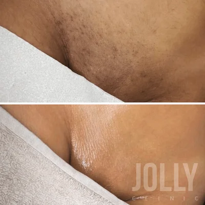 Для осветления пигментации можно использовать сыворотки на основе кислот или специальные средства против вросших волос. Обычно они содержат те же осветляющие компоненты, такие как фруктовые кислоты и витамин С.