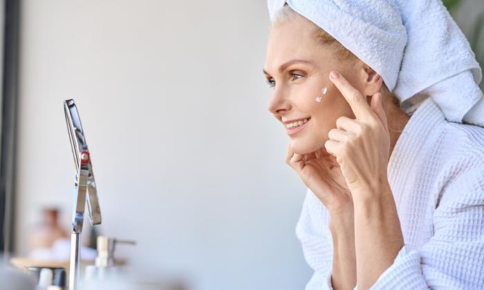 - Для зрелой кожи целесообразно использовать продукты, содержащие антиоксиданты (такие как витамин C или экстракт зелёного чая).