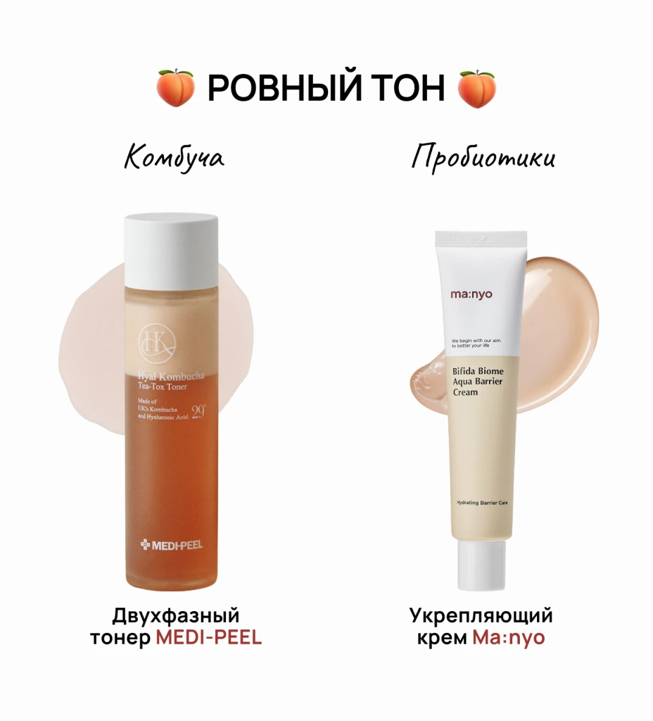 Сочетание комбучи и бифидобактерий прекрасно увлажняет кожный покров, помогает выровнять тон и поддерживает упругость кожи.