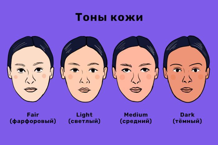 Определить тон кожи довольно просто — нужно понять, насколько она светлая или тёмная. Существует четыре основных тона: