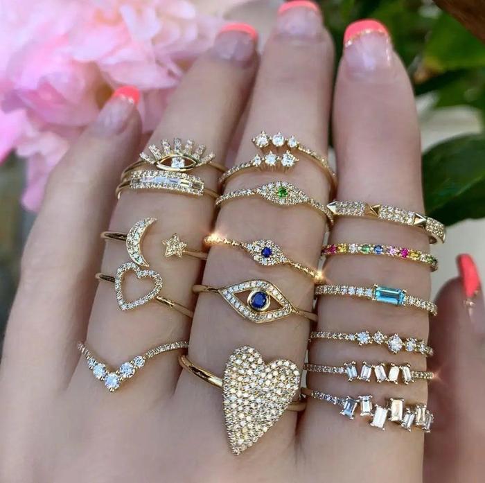 Это открывает множество возможностей при выборе колец: главное, чтобы они гармонировали с общим образом и друг с другом.