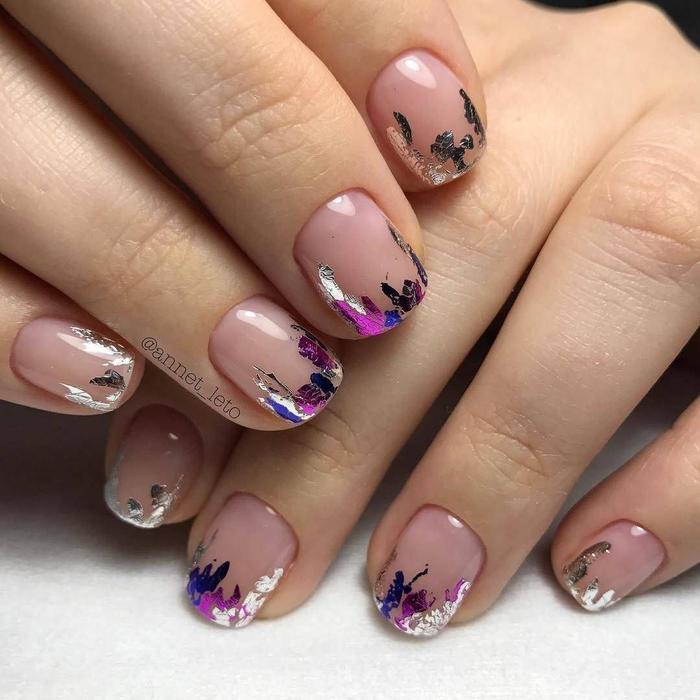 Для реализации этого направления активно используется фольга, что позволяет создавать красивые переливы линий, полос, графики. Эта техника вдохновляет на множество вариаций на основе различных стилей, цветов и оттенков.