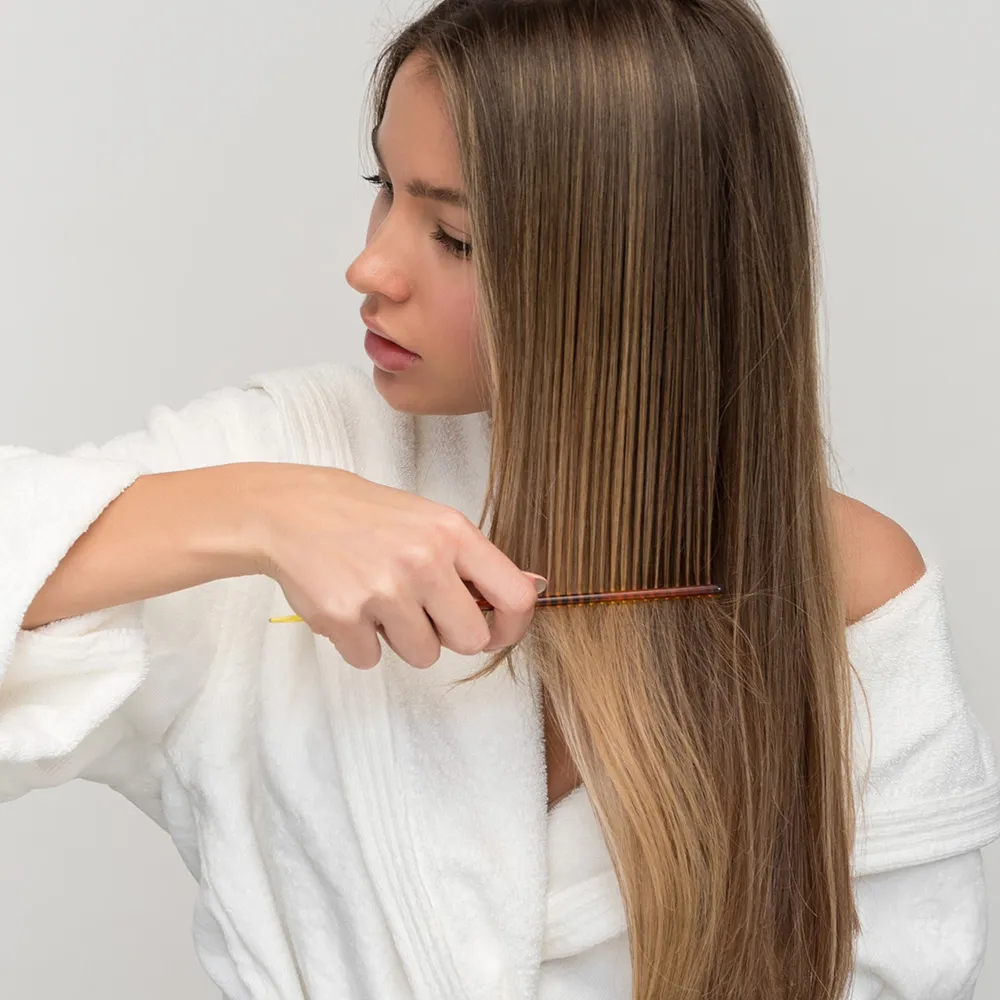 - Тщательно расчесывайте волосы и подсушите их по всей длине;