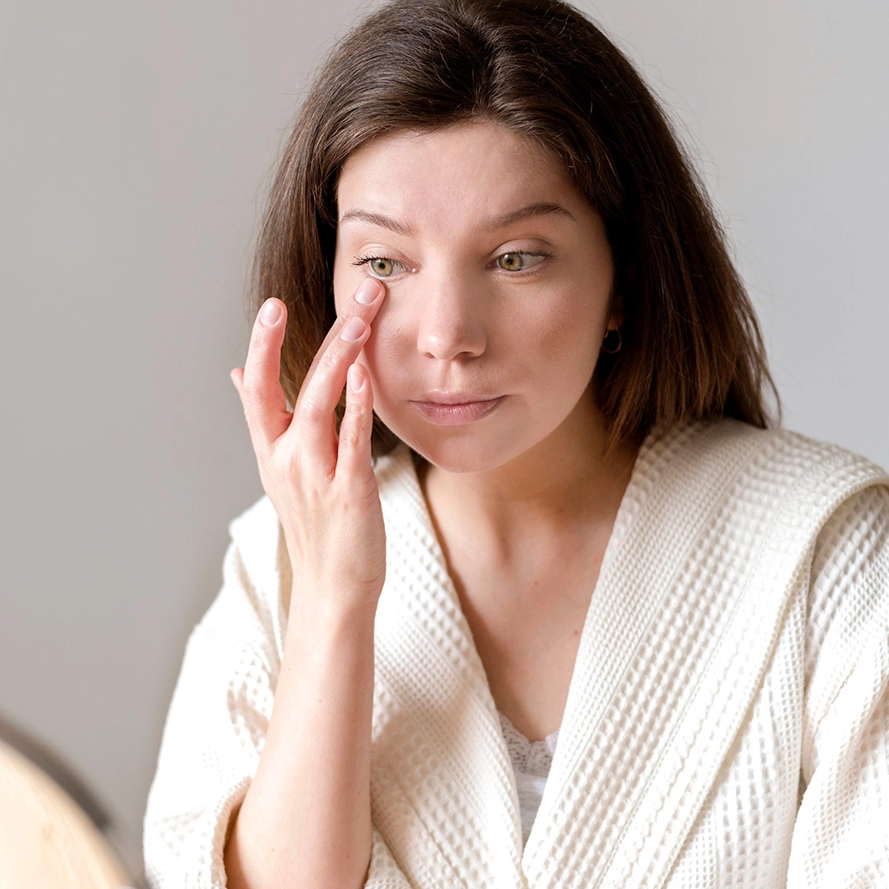Кожа вокруг глаз более тонкая и менее защищенная, что с течением времени делает её более восприимчивой к потерям влаги. Это приводит к быстрому появлению признаков старения, таких как обезвоживание, отечность и морщины. Однако с помощью правильной корректировки ухода можно отложить их возникновение на более поздний срок.