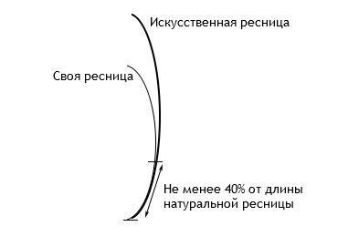 - Максимальная контактная зона: при любом объеме зона соприкосновения искусственной ресницы с натуральной должна составлять минимум 40% от длины ресницы.