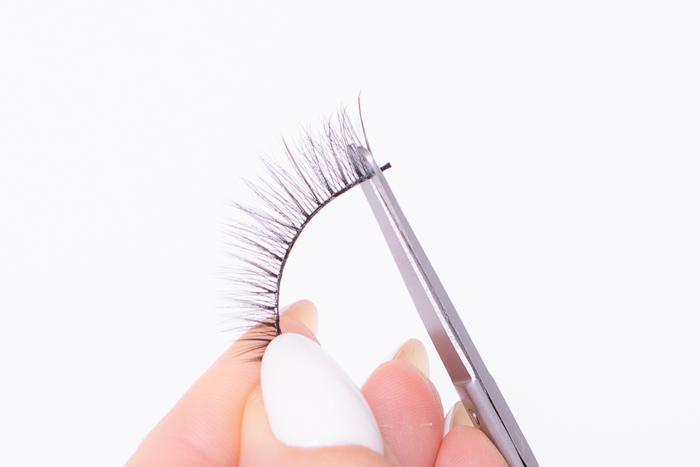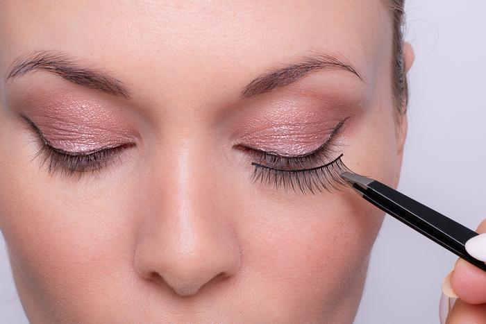 Когда вы зафиксировали пучок, отпустите его и аккуратно прижмите накладные ресницы к своим с помощью основания пинцета. Стоит отметить, что такой способ может немного сократить видимую длину накладных ресниц. Я использовала пучки длиной 12 мм, и расположенные таким образом они выглядели идеально, так как приклеивание сверху могло бы сделать их слишком длинными для меня.