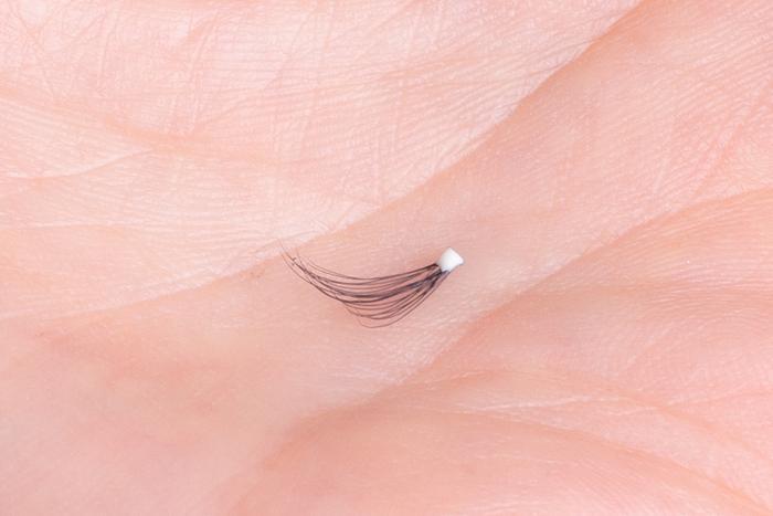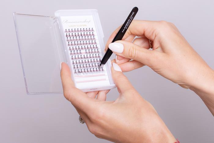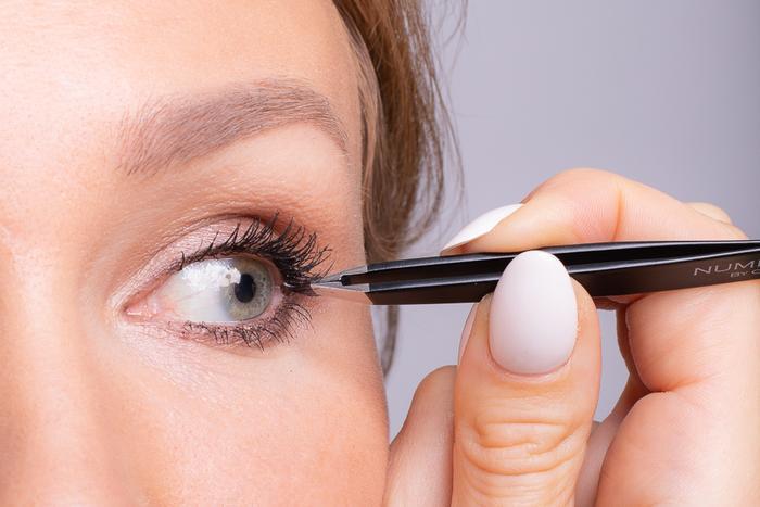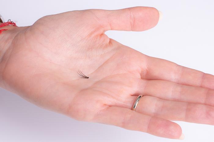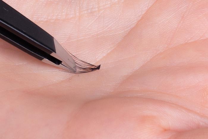 Верните пучок на ладонь и снова возьмитесь за кончики ресниц с помощью пинцета.