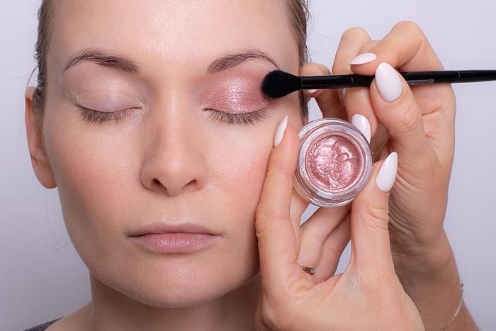 Сначала я нанесу на все подвижное веко кремовые тени Romanovamakeup Sexy Eye Cream Metallizer в оттенке Pink Orchid.