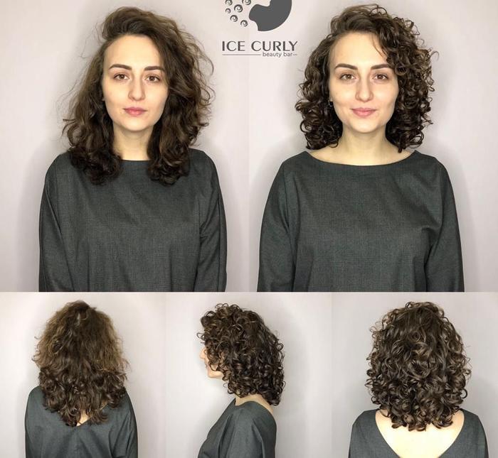 Обращайте внимание на средства с компонентами, которые заполняют поры, увлажняют, разглаживают и придают блеск. После такого ухода прическа может выглядеть более плоской, поскольку лишняя пушистость уходит, и акцент делается на завитки.
